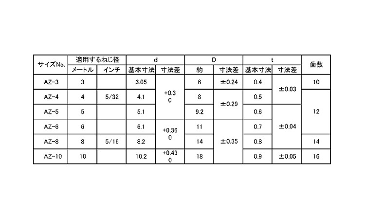 1.内歯形----内径側の歯を45度ほど絞り、ばね作用を利用してネジのゆるみを防止します。