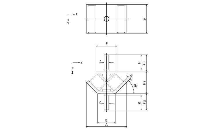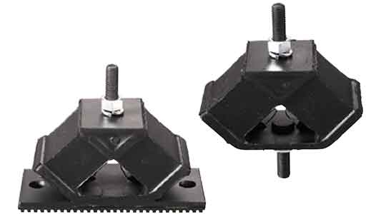 ゴムを傾斜配置に用いて、複雑な振動系の防振支持に適すように設計しています。
