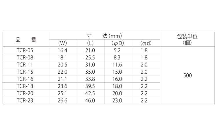 樹脂 | ナチュラル | TCR-18 | 要確認 | なし | 500 | 8.71円 7.92円 | ||