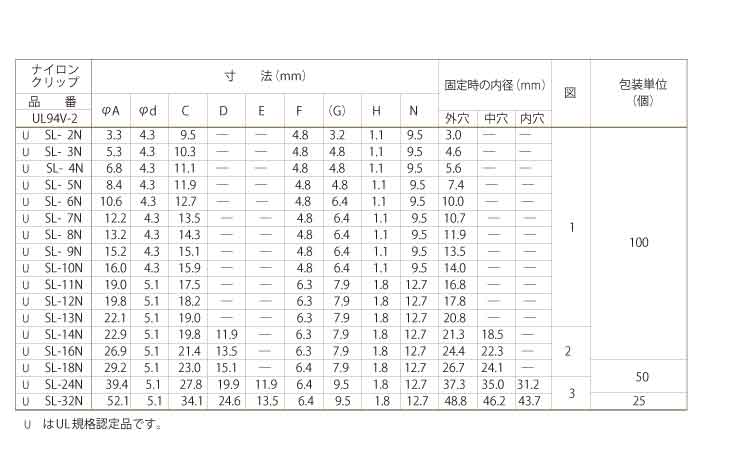 PA(ナイロン) | ナチュラル | SL-2N | あり | なし | 100 | 6.46円 5.88円 | ||