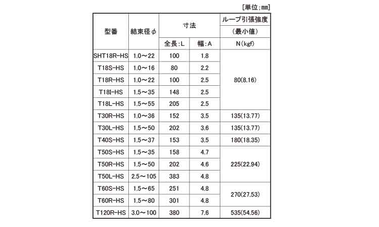 ●横ズレ防止力に優れ、軽い挿入抵抗で確実な結束が可能です。