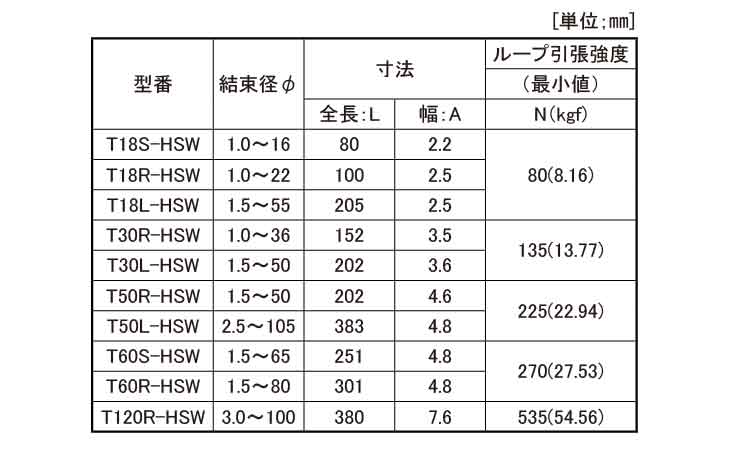 ●横ズレ防止力に優れ、軽い挿入抵抗で確実な結束が可能です。