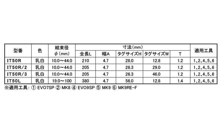 ●マーキングタイIT50タイプは、太径に対応しており、強固に結束することができるマーキングタイです。
