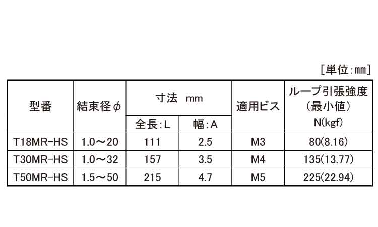 ●MSタイのスタンダードタイをベースに、ビス止め用固定穴を設けた一体成形のタイです。