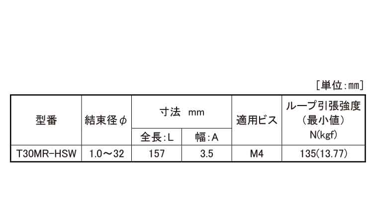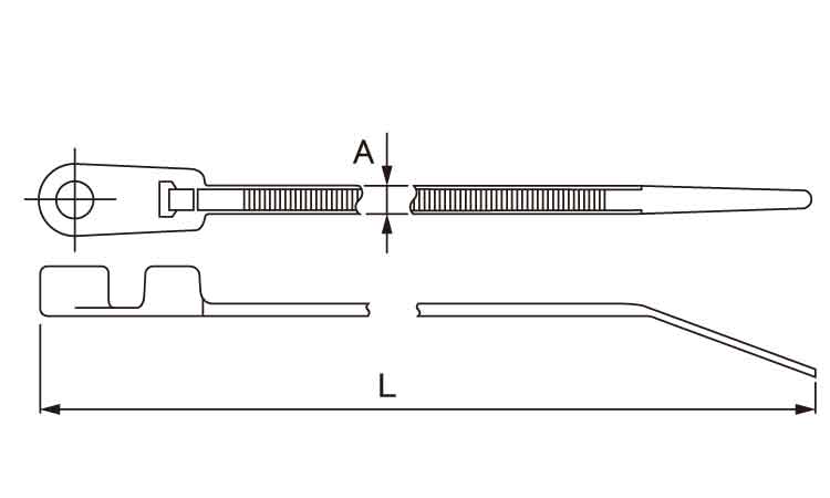 ●MSタイのスタンダードタイをベースに、ビス止め用固定穴を設けた一体成形のタイです。