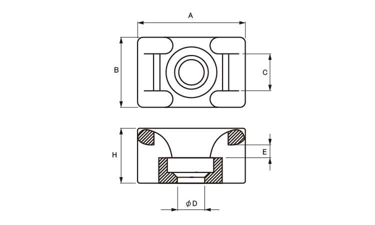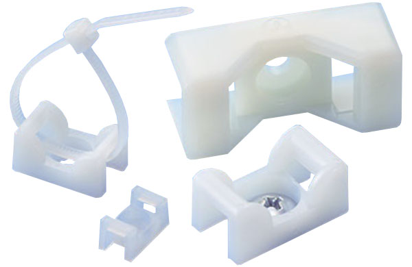 配線固定具「タイマウント(KR)」の66ナイロン標準品です。台座形状のため、配線をしっかり保持します。