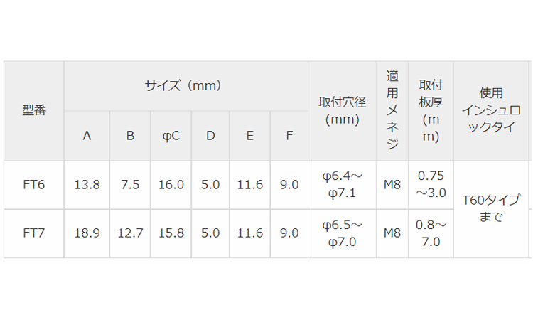 鉄 | 黒(樹脂) | FT6 | 要確認 | なし | 100 | 56.79円 51.63円 | ||