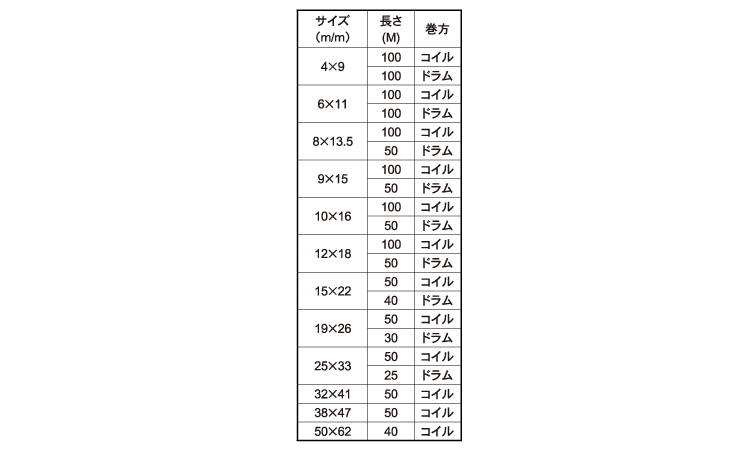 サイズ 径+長さ(ℓ) |