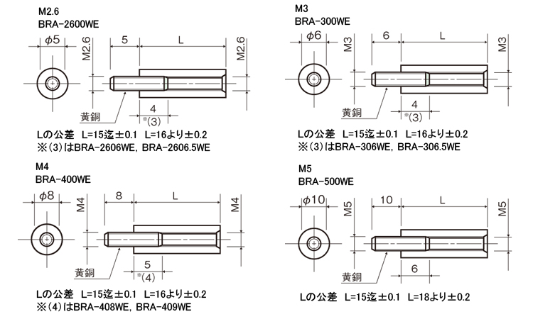 ●オネジ 材質/快削黄銅(C3604BD)