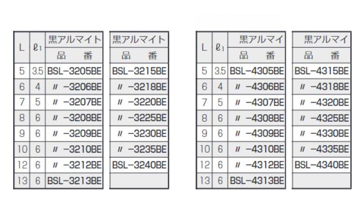 アルミ | アルマイトブラック | BSL4305BE | 要確認 | なし | 300 | 167円 152円 | ||
