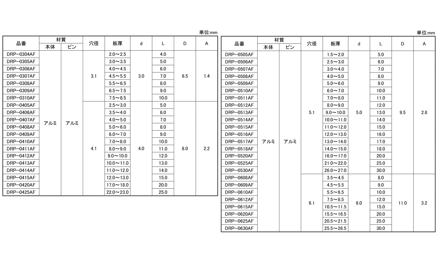 アルミ | 生地 | DRP-0530AF | 要確認 | なし | 50 | 44.66円 40.6円 | ||