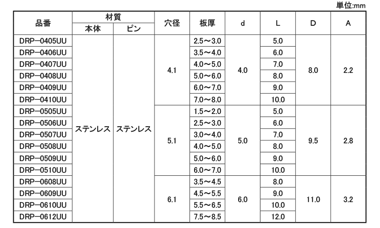 ステンレス | 生地 | DRP-0406UU | 要確認 | なし | 50 | 50.82円 46.2円 | ||