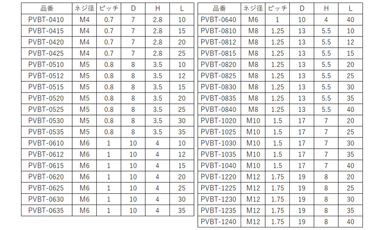 PVDF | 白(樹脂) | PVBT-0420 | 要確認 | なし | 10 | 264円 240円 | ||
