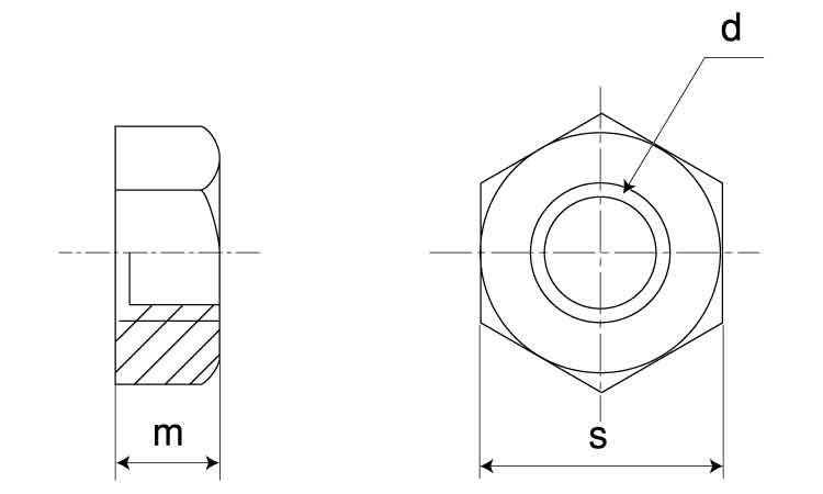 厚ナット(10割ナット)-厚さがねじサイズの約10割のものです。