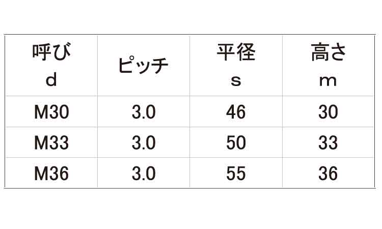 厚ナット(10割ナット)-厚さがねじサイズの約10割のもので主に両面取をとっています。