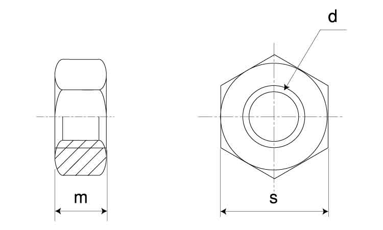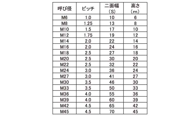 厚ナット(10割ナット)-厚さがねじサイズの約10割のもので主に両面取をとっています。