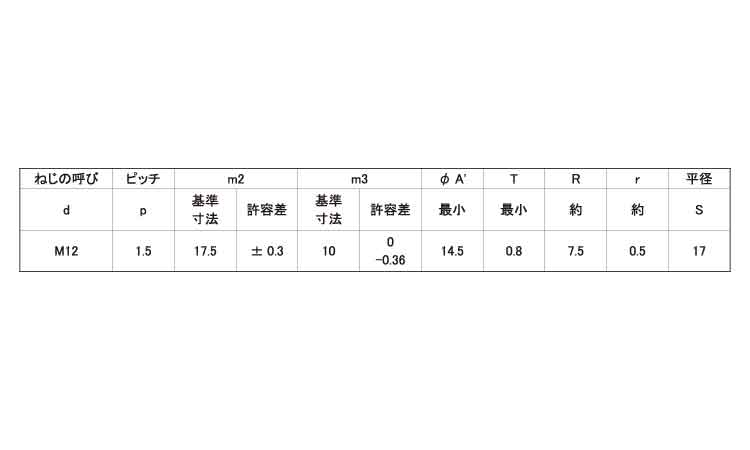 鉄 | ニッケル(銀) | M12ホソメ1.5 | 要確認 | なし | 250 | 62.67円 56.98円 | ||