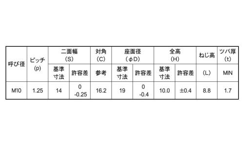 ステンレス | 生地 | M10(P1.25 | あり | なし | 250 | 141円 129円 | ||