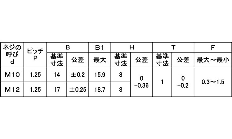 鉄 | BC(黒) | M12(P=1.25 | 要確認 | なし | 200 | 33.15円 30.14円 | ||