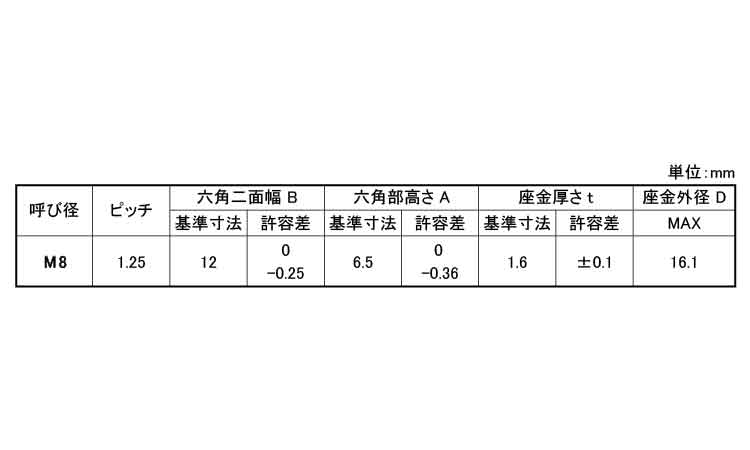 鉄 | 三価ホワイト(銀) | M8 (B=12 | あり | なし | 350 | 14.91円 13.55円 | ||
