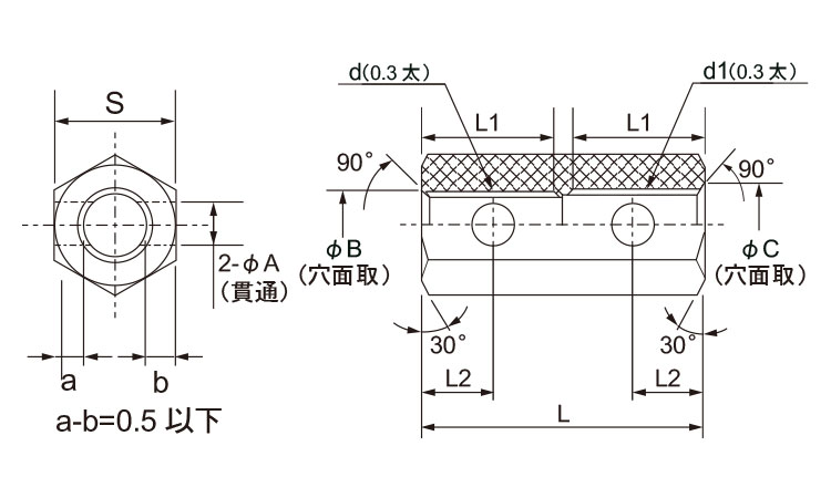 横穴付き異径高ナット(M-W)