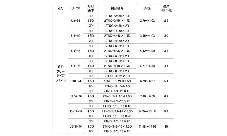 ステンレス | 生地 | 5/16 X 18-1D | 品薄 | なし | 100 | 256円 233円 | ||