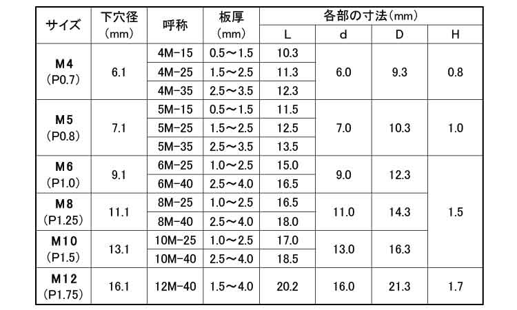 鉄 | 三価ホワイト(銀) | M4-35 | 要確認 | なし | 1,000 | 17.02円 15.48円 | ||