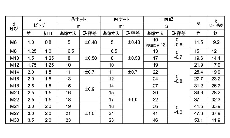 ●上ナット(凸型)と下ナット(凹型)の2個使いとなります。