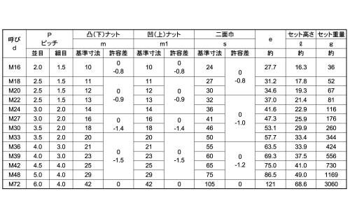 ●上ナット(凸型)と下ナット(凹型)の2個使いとなります。