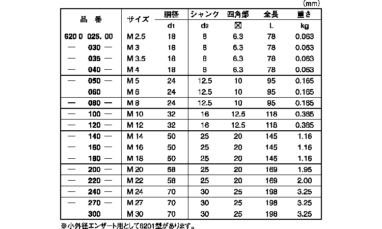 サイズ 径+長さ(ℓ) |