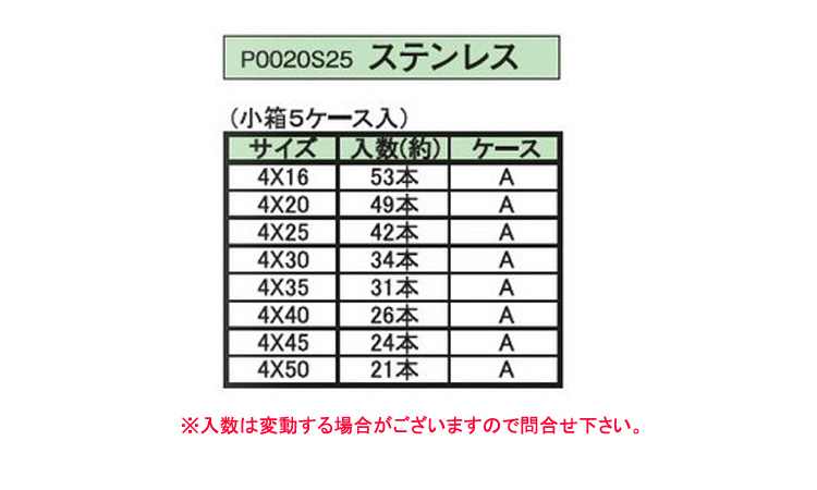 ステンレス | 生地 | 4X25(42) | 要確認 | なし | 5 | 308円 280円 | ||