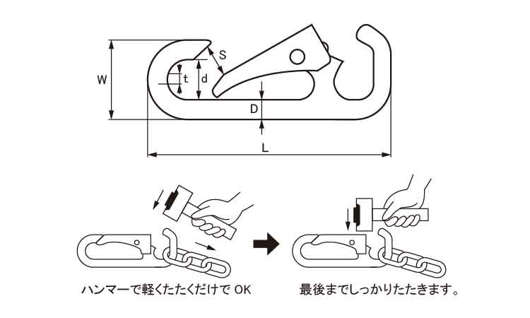 スナップフック D型