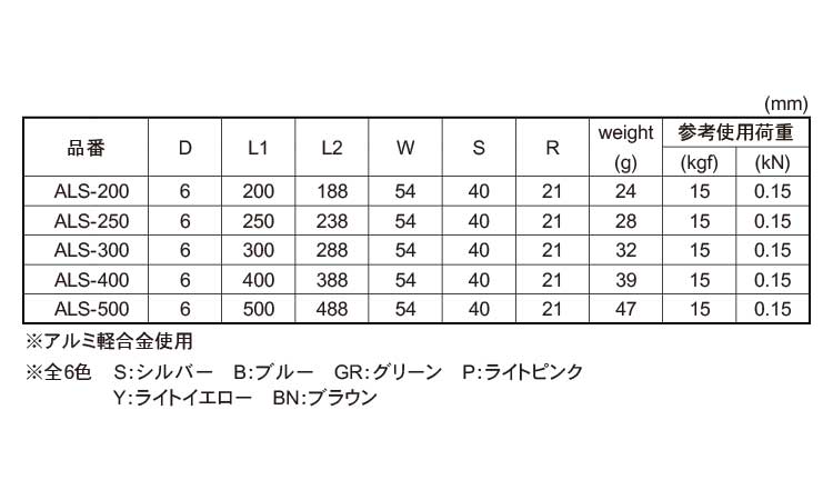 アルミ | 塗装シルバー | ALS-500S | 要確認 | なし | 15 | 1,444円 1,313円 | ||