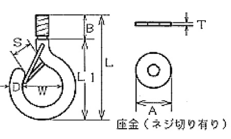 壁面・床面・柱等に設置し、チェーン・ワイヤー・ロープの端末金具として。