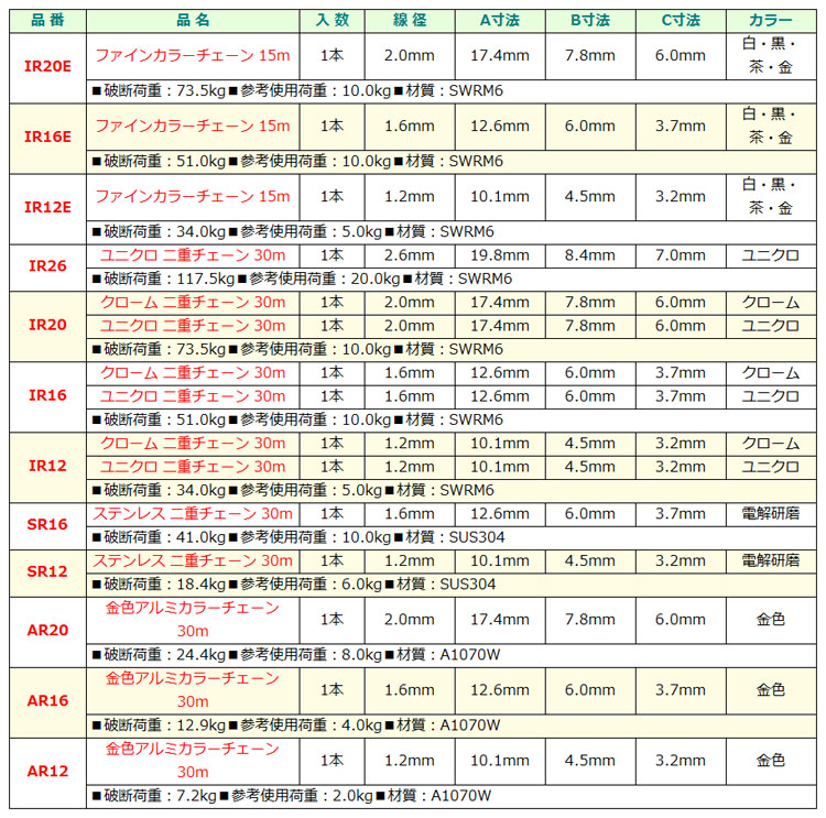 二重チェーン ニッサチェインIR12 バラ売り不可