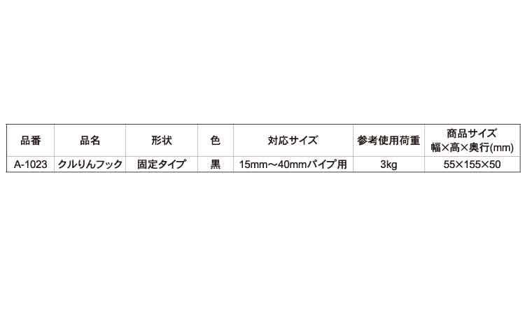 クルりんフック(固定タイプ(黒