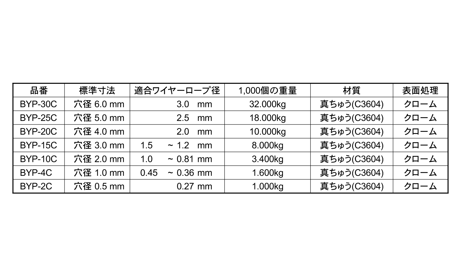 黄銅 | クローム(銀) | BYP-20C | あり | なし | 20 | 522円 475円 | ||