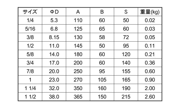 サイズ 径+長さ(ℓ) |