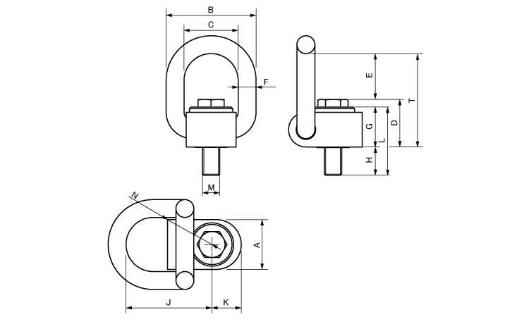 リング部の180°可動と、ボルトを軸にした360°回転により、全方向負荷の