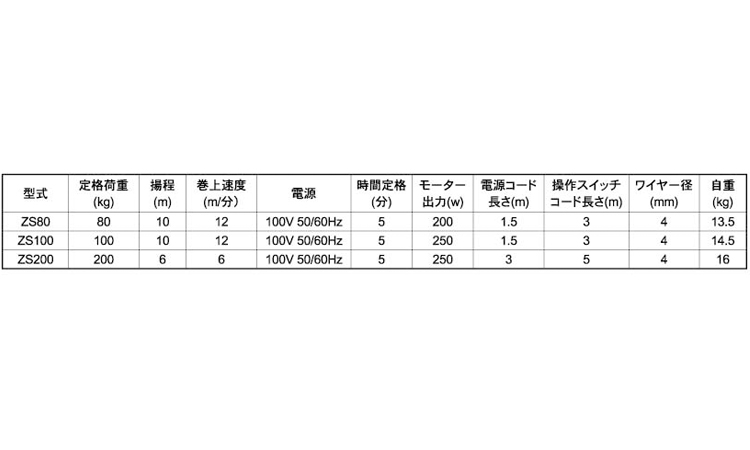 電気ホイスト(ZS80・100