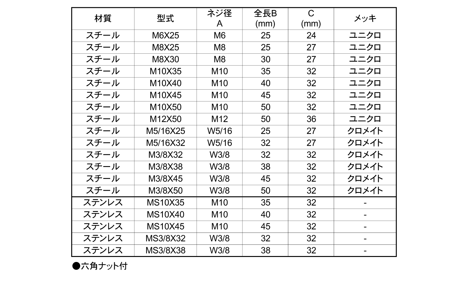 鉄 | ユニクロ(銀) | ミツヅメバケットボールトN6 X 25 | あり | なし | 200 | 179円 163円 | ||