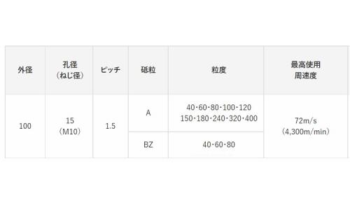 ●A…一般鋼、ステンレス鋼用(薄板の軽研削・研磨)