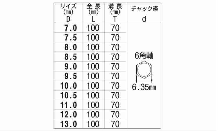 6角軸鉄工用ドリル全長L100