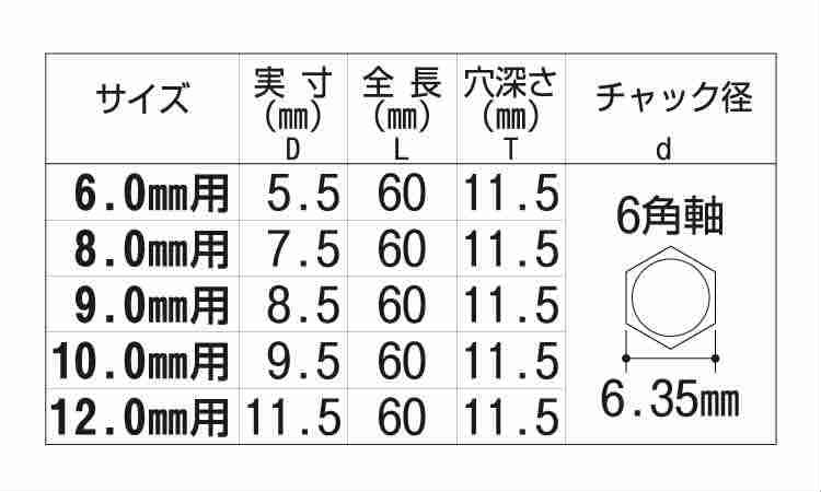 6角軸ダボ錐(ダボ穴あけ用(大西