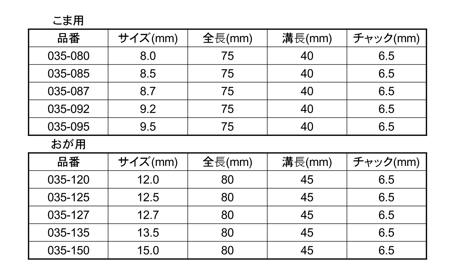 サイズ 径+長さ(ℓ) |