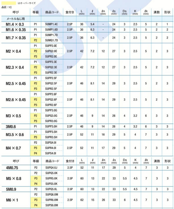 ヤマワSU+SPタップ2.5X0.45P1 バラ売り不可