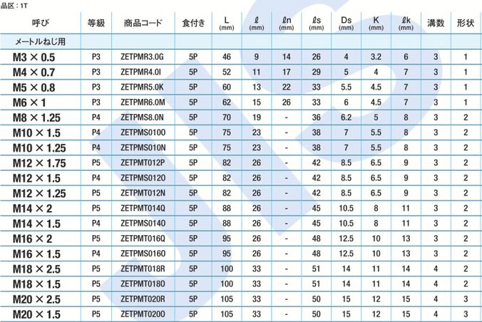 ヤマワZETーPタップM8X1.25P4 バラ売り不可