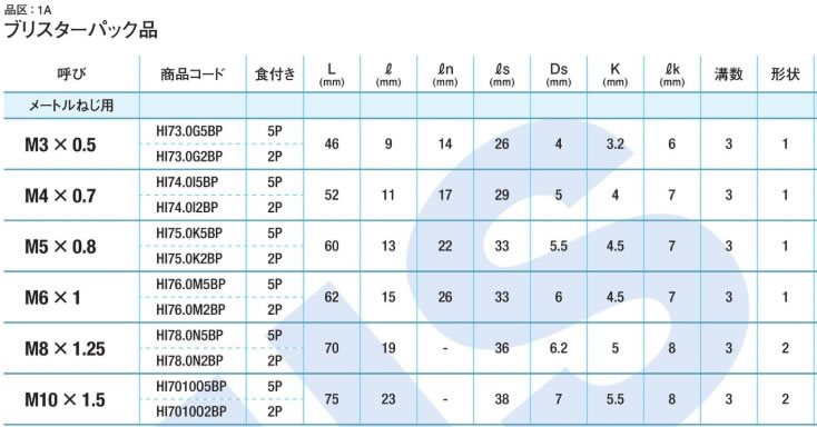 ヤマワIHTタップ 中(パックM3X0.5(5P バラ売り不可