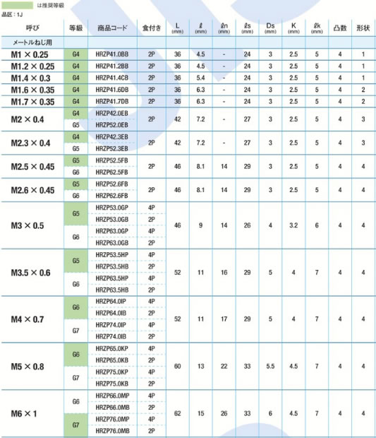 ヤマワHP+RZタップ止まりM1.4X0.3G4 バラ売り不可