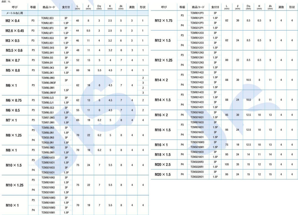 ヤマワNーCTーFC 上M4X0.7P3 バラ売り不可